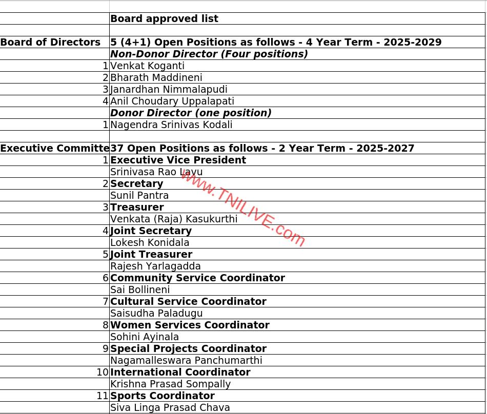 Tags-TANA 2025 Election Results, Lavu Srinivas Selected As TANA 2027-29 President